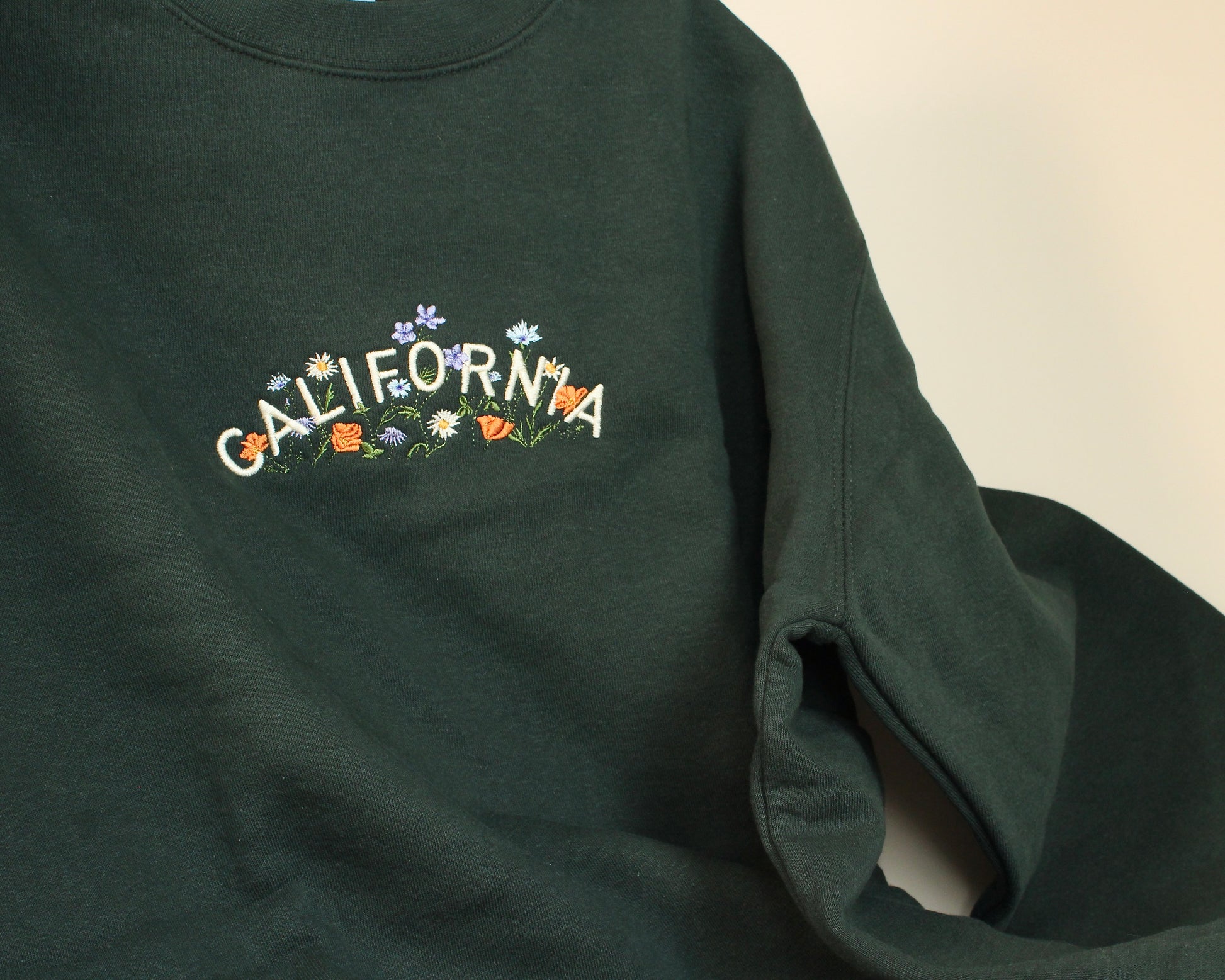 Bring a bit of California sunshine wherever you go with our California Wildflower Crewneck. Featuring a beautifully embroidered design of delicate wildflowers, this sweatshirt captures the laid-back, nature-loving spirit of the Golden State.