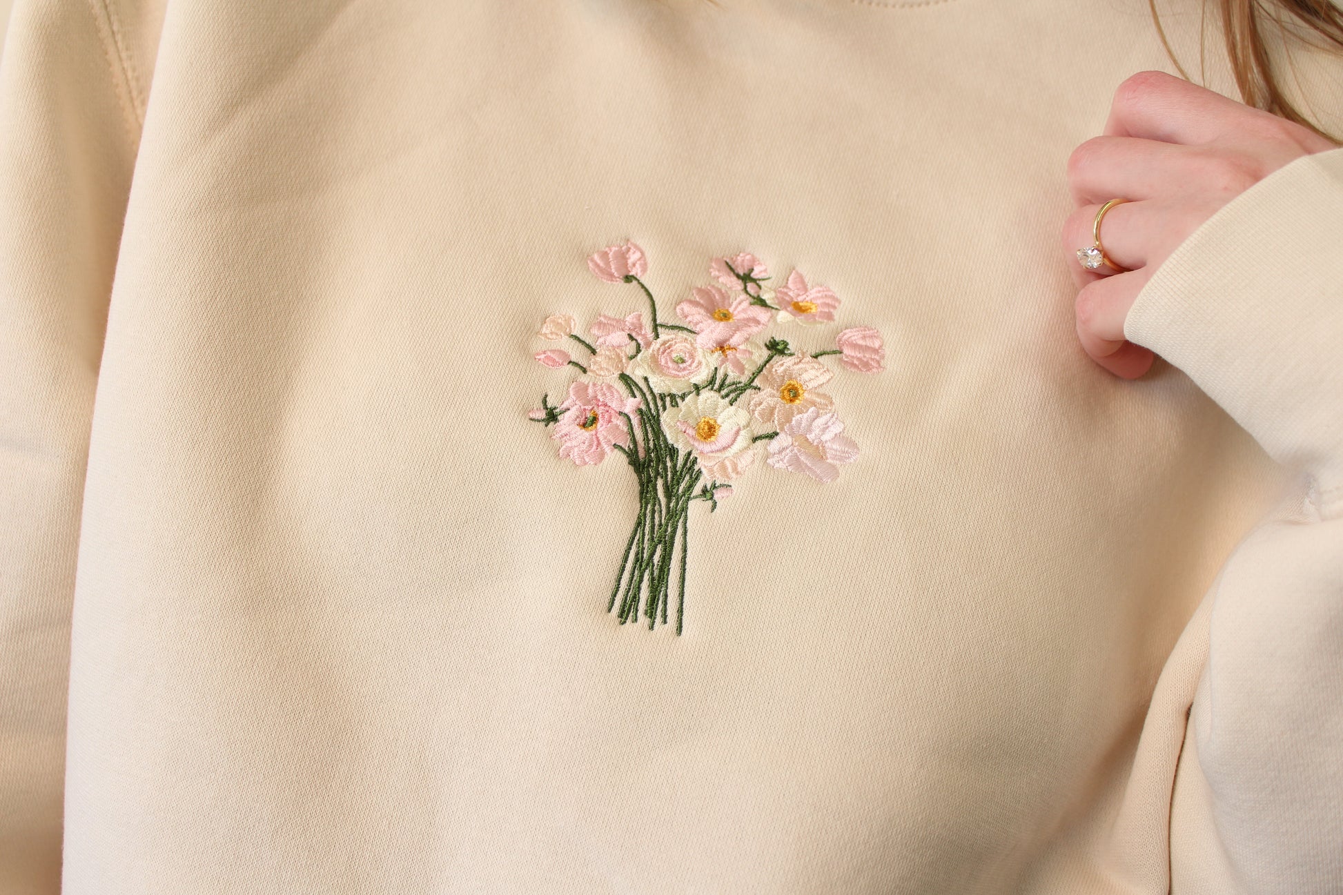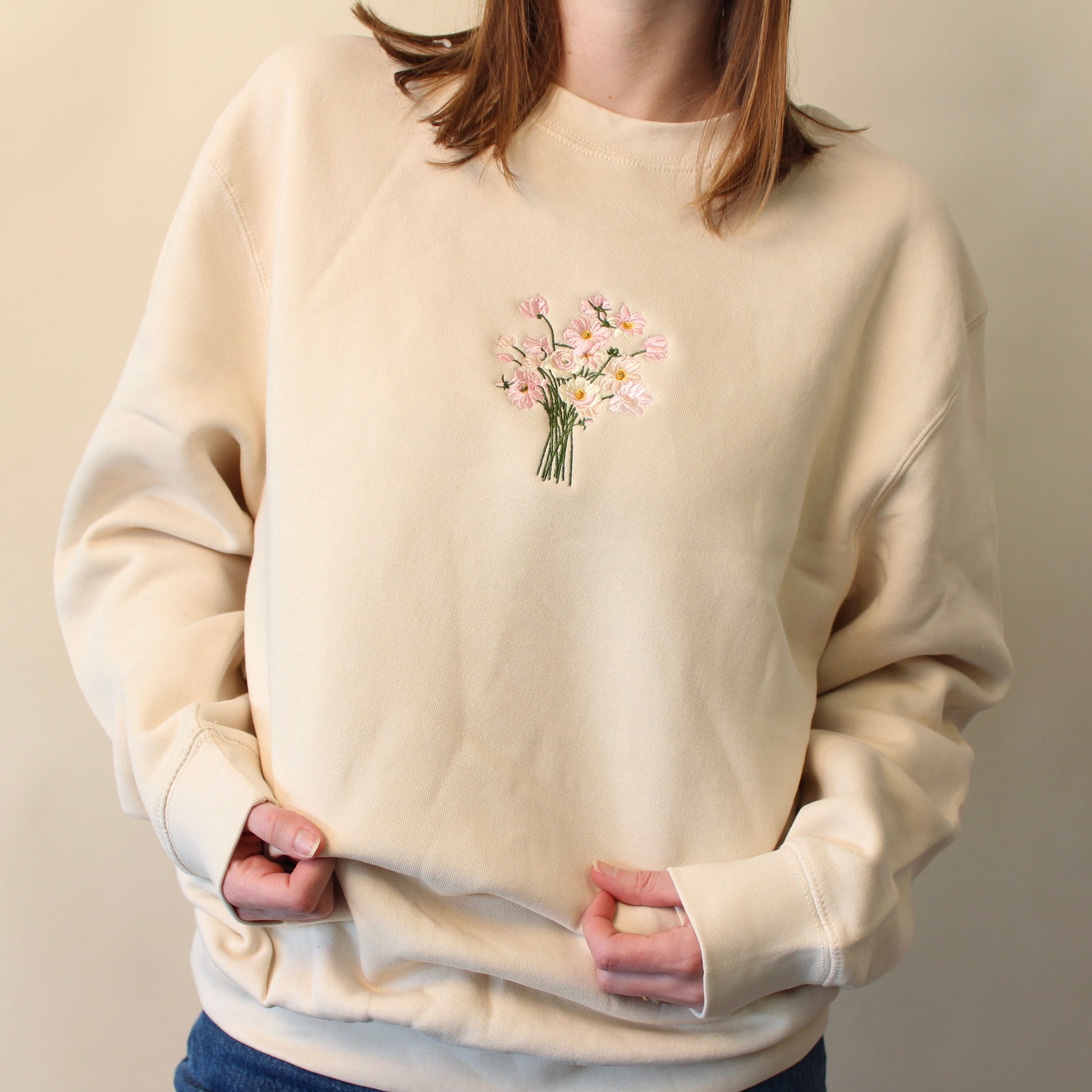 Soft, cozy, and endlessly wearable, our embroidered bouquet sweatshirt brings a little romance to everyday style. Featuring a delicate stitched bouquet with pink florals, this piece is perfect for Valentine’s Day and just as sweet the rest of the year.