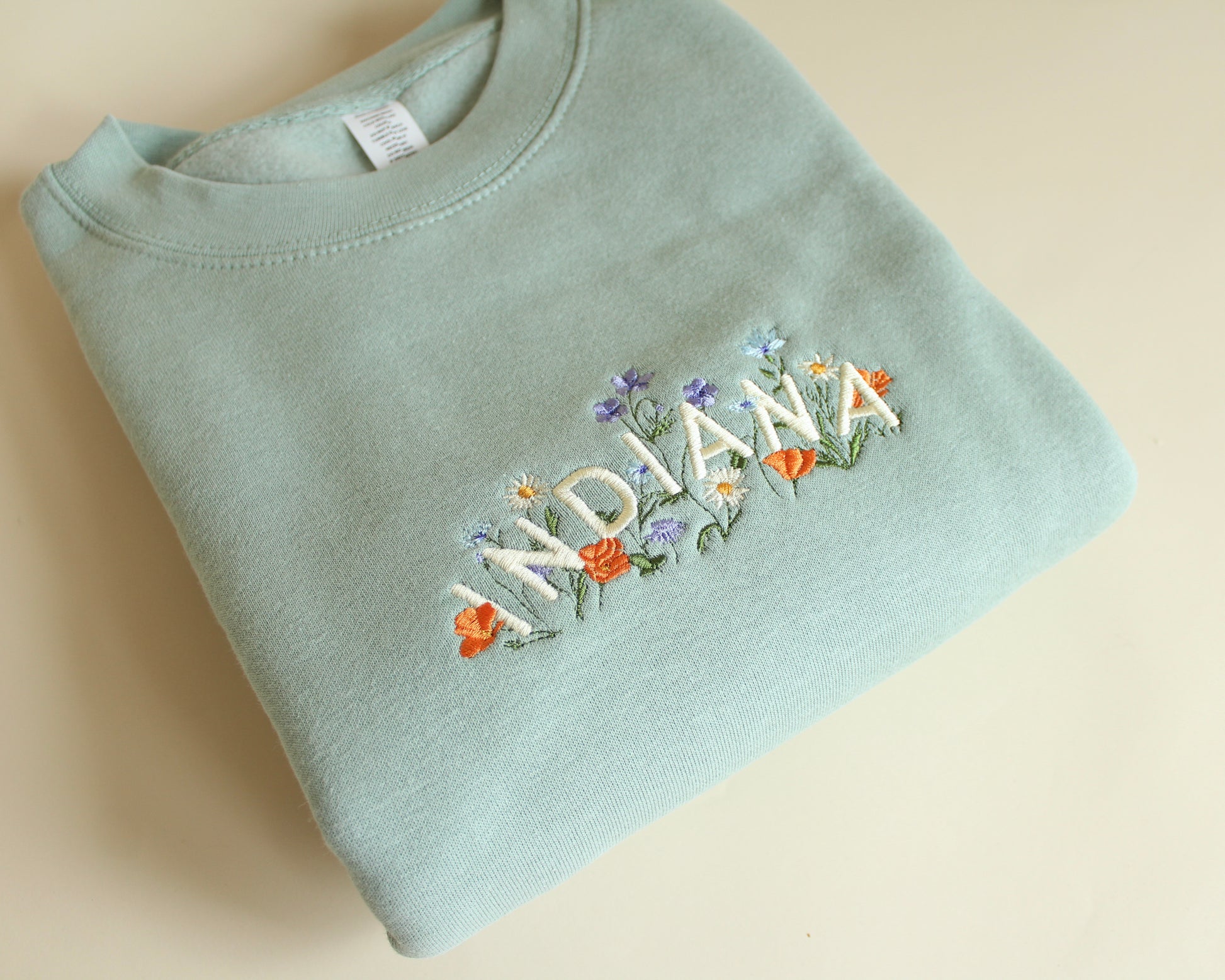 Celebrate the heartland with our Indiana Wildflower Crewneck, featuring beautifully embroidered “Indiana” lettering surrounded by delicate and colorful wildflowers. Inspired by the quiet charm of the countryside and the rich natural beauty of the Hoosier State, this sweatshirt brings a touch of Midwestern warmth wherever you go.