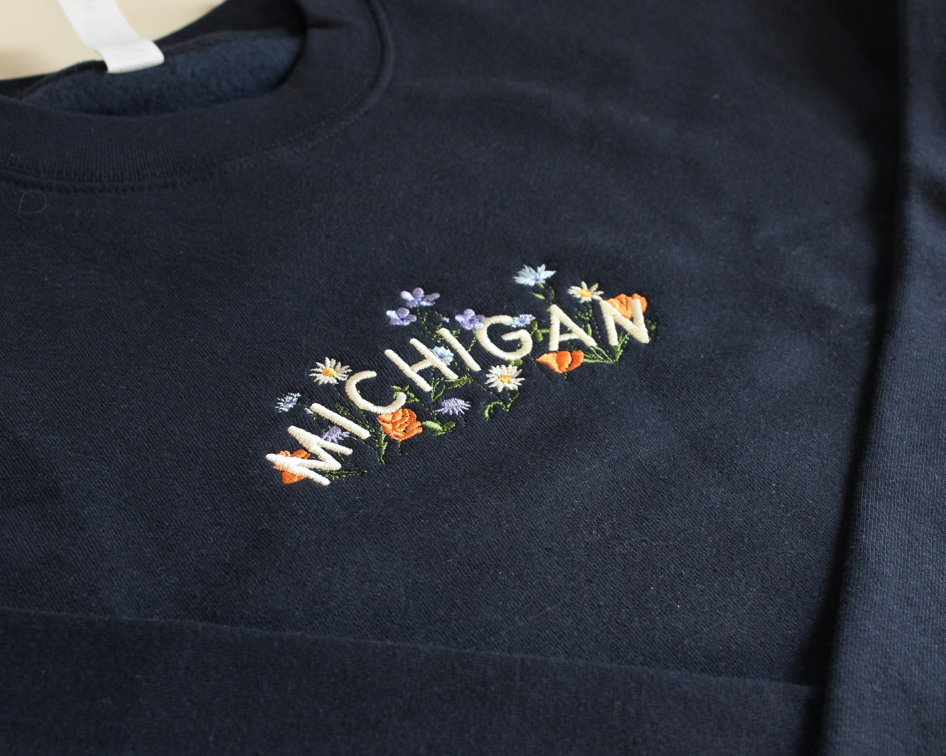 Show off your Great Lakes pride with our Michigan Wildflower Crewneck. Featuring colorful embroidery of “Michigan” framed by a spray of wildflowers, this sweatshirt is a cozy tribute to the state's natural beauty.