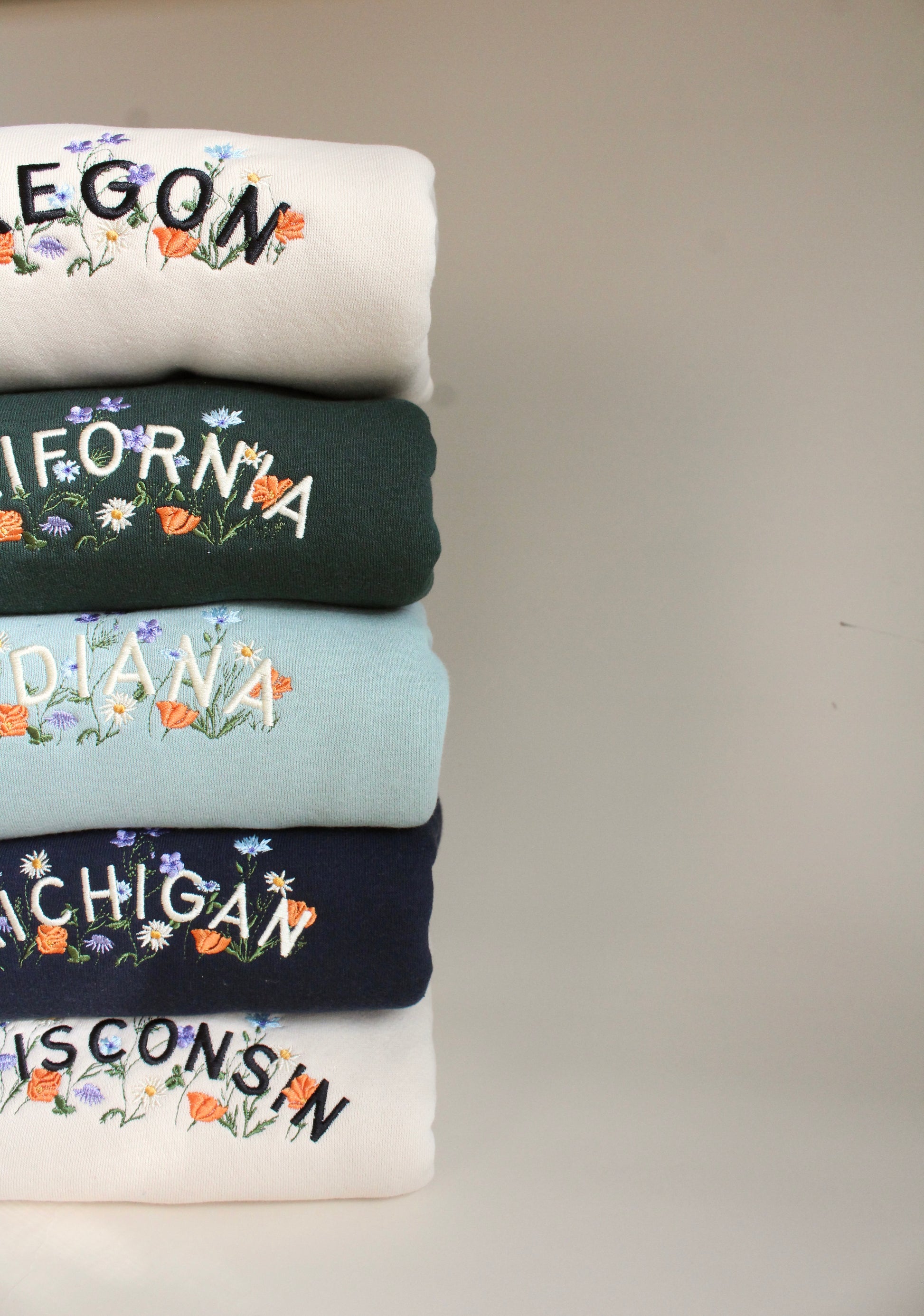Celebrate the natural beauty of the Pacific Northwest with our Oregon Wildflower Crewneck. Featuring delicate embroidery of “Oregon” surrounded by colorful wildflowers, this sweatshirt pays tribute to the state's lush landscapes, forest trails, and untamed spirit.