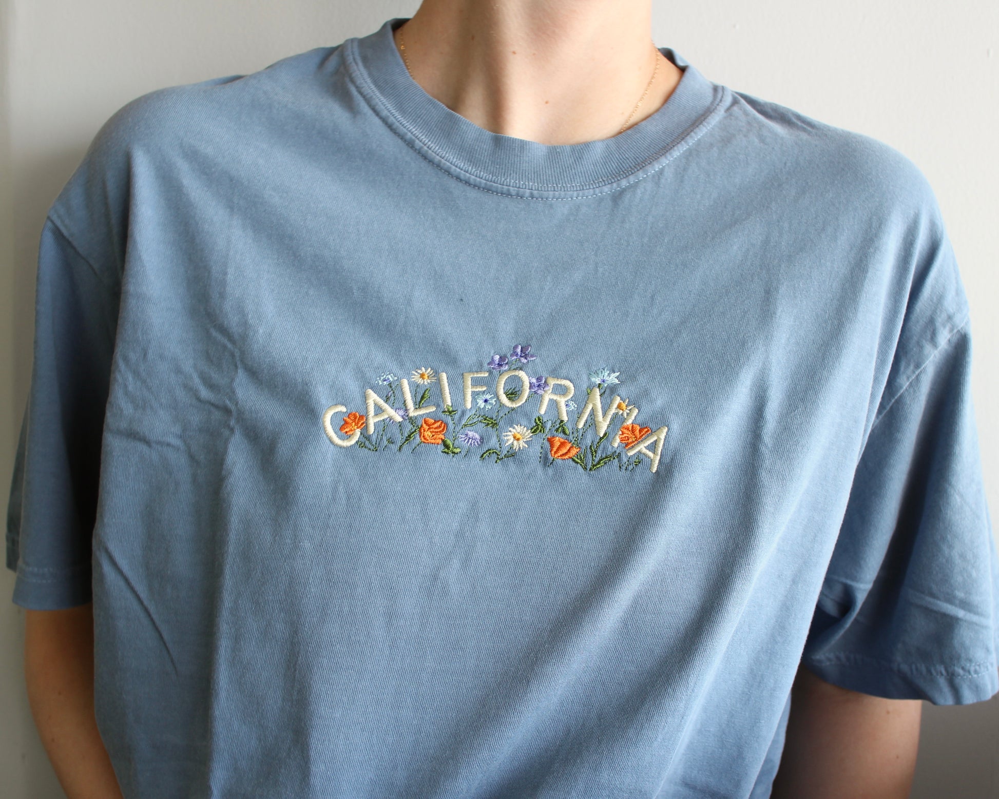 Capture the easygoing spirit of the Golden State with our California Wildflower Tee. Made with a 100% ring-spun cotton and garment-dyed for that perfectly worn-in feel, this Comfort Colors t-shirt features delicate embroidery of “California” framed by delicate wildflowers—an ode to sun-soaked coastlines, golden hills, and endless bloom.