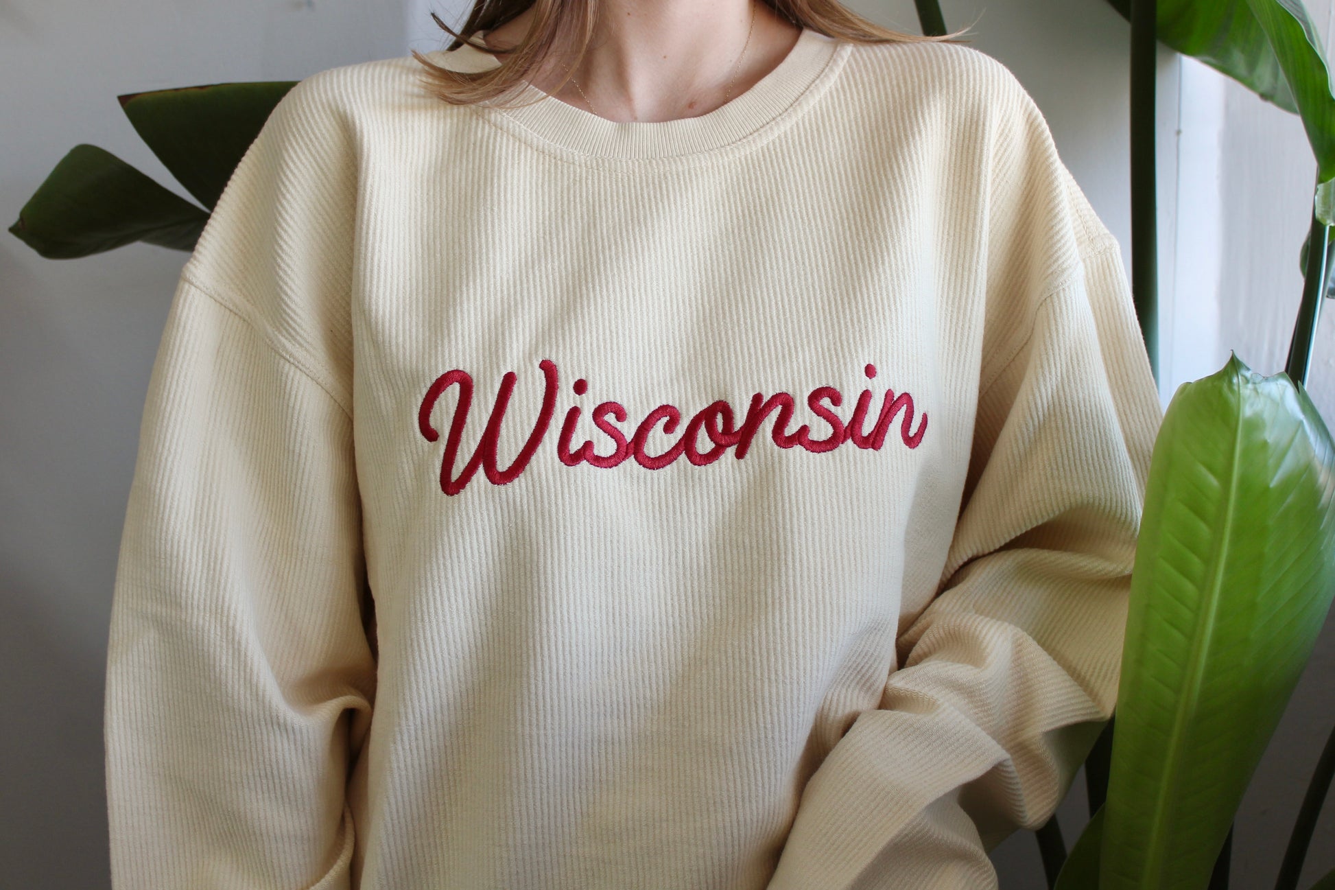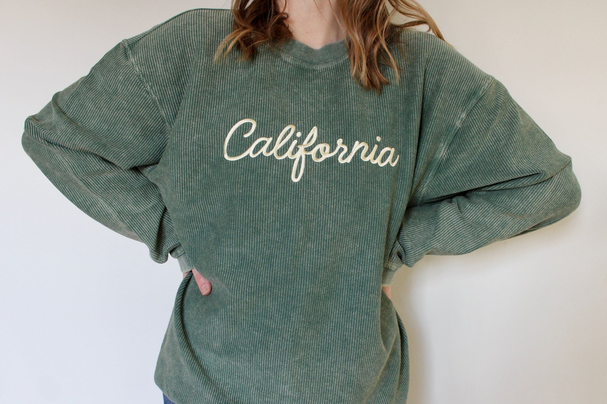 Stay cozy in one of our 100% cotton embroidered corded crews, featuring a vintage-inspired textured ribbed fabric and classic script embroidery with a growing list of states. Designed for an effortlessly oversized fit, this sweatshirt is perfect for layering or lounging in ultimate comfort.